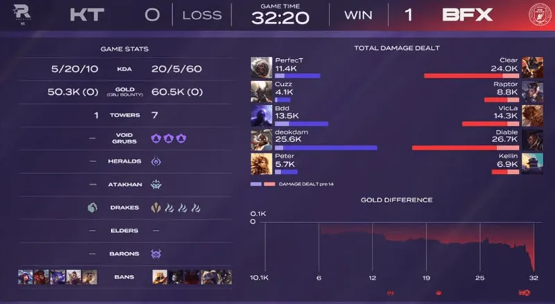 点击为双方选手评分虎扑09月11日讯 【GAME1】KT蓝色方、BFX红色方